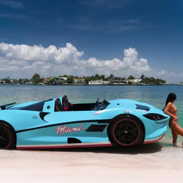 Designed with passion and crafted to perfection, the Watersports Car Series-X is quickly becoming the USA’s favorite jetcar. Whether it’s the sleek design, the unmatched speed, or the feel of the wind against your face as you glide over the waters, there’s something for every enthusiast in this water jet car.